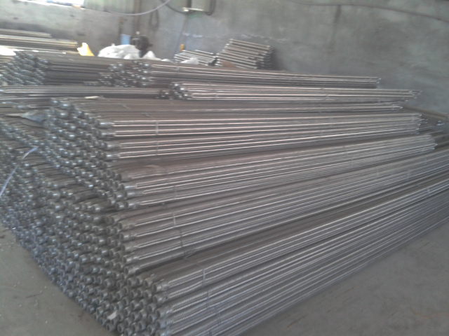 流化棒内管是选用热镀锌的钢管,首先由带钢三面冲孔,冲孔直径为6mm,以后采用高频焊焊接成管,在镀锌管外包裹两层专门定制一面绒面一面光面的300g/m2滤布,滤布外套有耐磨、耐腐蚀不锈钢波纹管,最后用400吨八口缩管机进行缩口,即保证了气化管良好的透气性,又避免物料进入气化管,延长了气化管使用寿命。库内安装均化装置,库内均化装置是我公司的专业设计,在出料及出库率的效果上能达到90%以上,我公司采用均化装置是我公司生产的流化棒,安装在库内填充斜面上,安装是按库内扇形排列安装,安装分为2环,减压锥内一环,减压锥外一环,每个扇形分为6个供气区域,6个区分为3个大区,供气为对称循环供气,安装间距大的是500mm,最小的是 300mm,安装的流化棒能在整个钢板库内达到每一个地方无死角,流化棒优点在于间距小,透气为4边透气,彻底达到均化效果,提高物料出库率。我公司提供的气化控制箱,为全自动电器操作系统,自动循环供气设计。